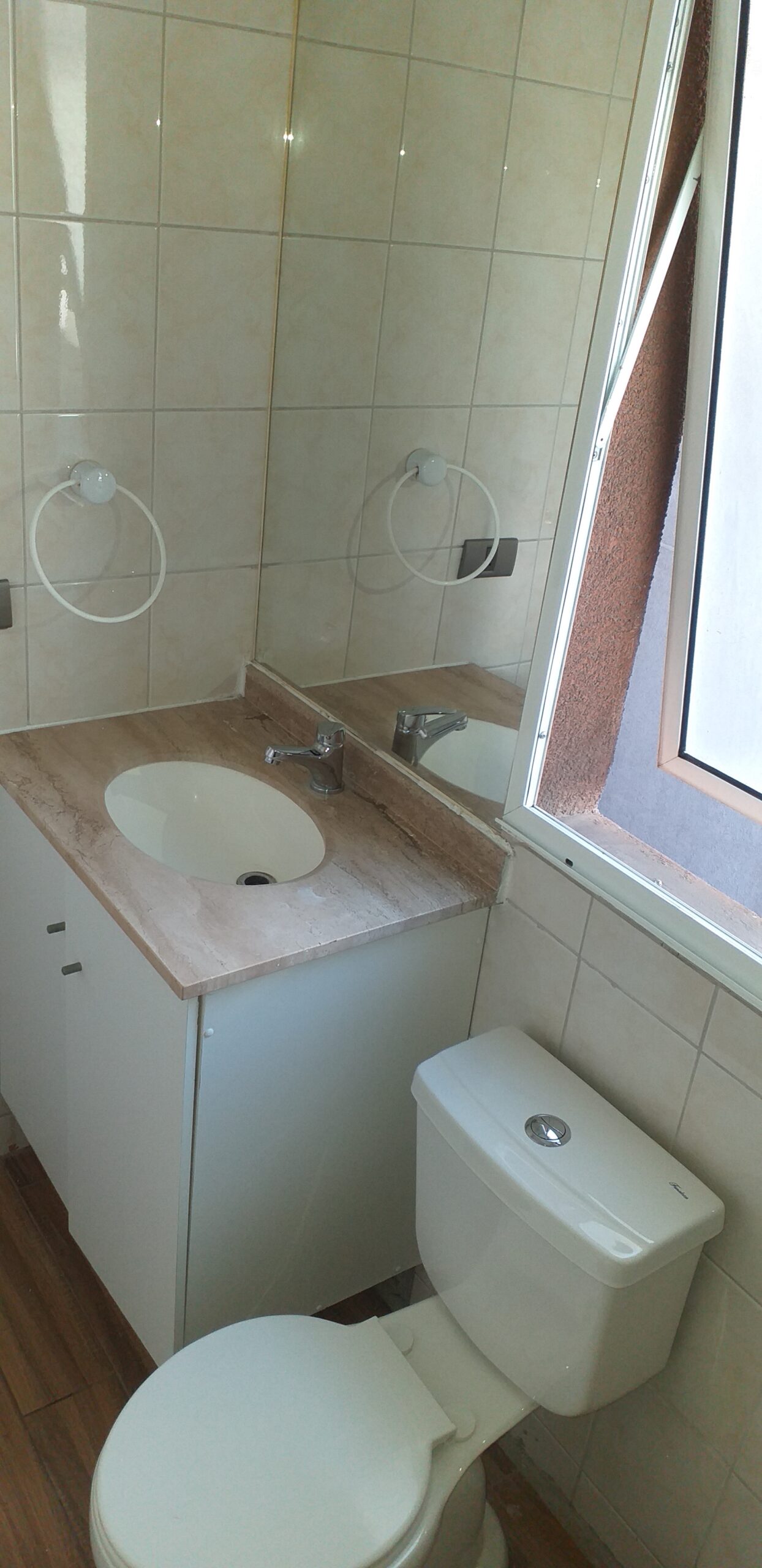 Baño amplio con luz natural y ventilación propia (tiene ventana), en excelente estado de mantención.