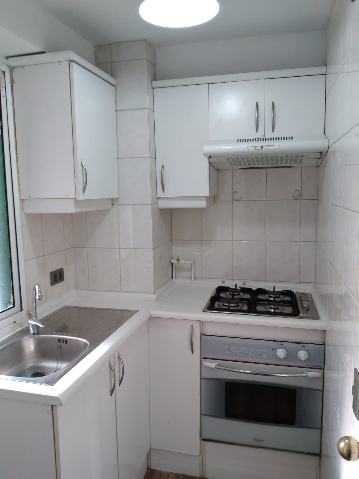 Cocina amoblada e independiente (con puerta y ventana). Cocina encimera a gas, con horno y campana.